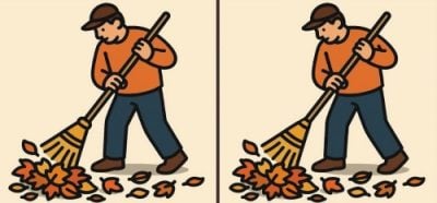 Pronto para o próximo desafio? Veja d fotografias de um homem a remover folhas de outono. À primeira vista, parecem idênticas, mas olha com atenção. Há três pequenas diferenças. Achas que consegues encontrá-las todas em apenas 49 segundos? Vamos ver se és muito perspicaz!