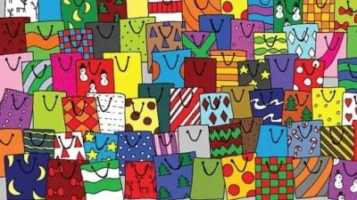Na imagem, há muitos pacotes de cores vivas. Entre eles, há um único cartão de oferta. Inicia o temporizador e olha atentamente para a imagem. Se conseguires fazê-lo em 18 segundos, estás entre os 1% mais observadores!